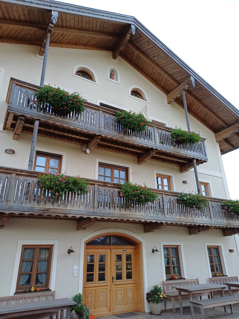 Der erste Halt erfolgte noch in Österreich beim Greischbergerhof in Neumarkt am Wallersee. Der Inhaber Toni führte die Gruppe durch seinen 4-Blumen-Betrieb und präsentierte das Wohnhaus mit den Ferienwohnungen, den Stall und den Romantikstadl, in dem bis zu 140 Gäste ausgelassene Feste feiern können.